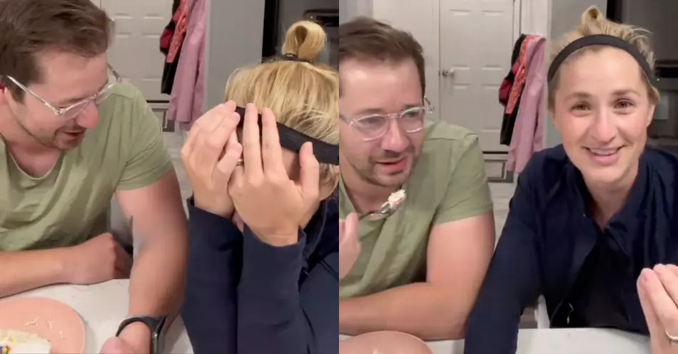 In the short clip, Mom and Dad are eating cake when the wife raises an interesting and very odd question.